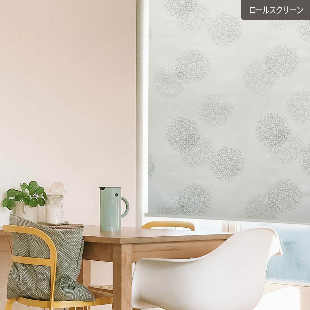 シンプルなホワイトの生地に小さなお花が集まって、優しい花火が開きます。 上質な遮光生地にちょっと遊び心のある柄を加えて、楽しく居心地のよい空間に。 すっきりコンパクトなロールスクリーンはカーテンとおそろいで小窓に設置したり、 シューズクロークなどの目隠しや間仕切りなど使い方いろいろ!