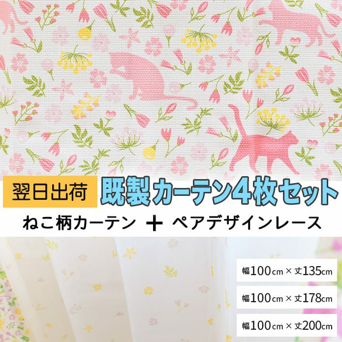 最短翌日出荷!新生活応援セット♪お得な既製カーテンレース4枚組 【翌日出荷】【カーテンレースセット】【既製(4枚入り)】おさんぽ