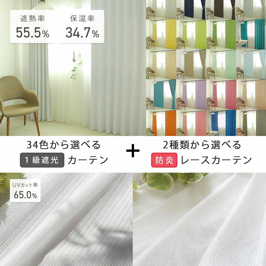 人気の1級遮光防炎の高機能カーテンと防炎レースが お手軽にセットで買えちゃいます!