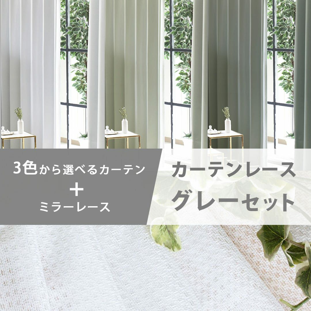 おしゃれなグレーカーテンレースセット 人気のグレー3色とシンプルなミラーUVカットレースがお手軽にセットで買えちゃいます!