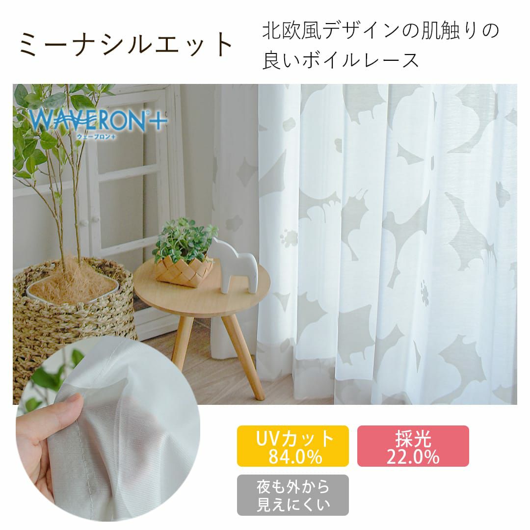 さらっとした肌触りにふわっと軽く、 光を反射して屈折させる光沢糸「ウェーブロンプラス」を使用したボイルレースです。 しっかり目隠ししながら、光を取り込み、お部屋を明るく快適に保ちます。 夜も外からの視線を遮り、プライバシーを守ります。