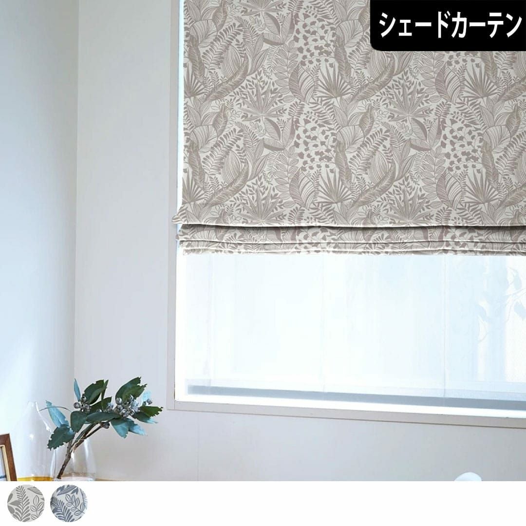 ▲グレー 北欧の森シリーズのナチュラルなボタニカルデザインのシェードカーテンです。 自然の美しさを楽しみながら心地よい空間を。
