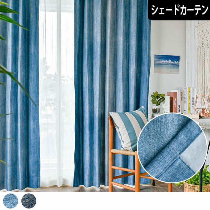 かすれた風合いが味わい深いデニム風のシェードカーテン