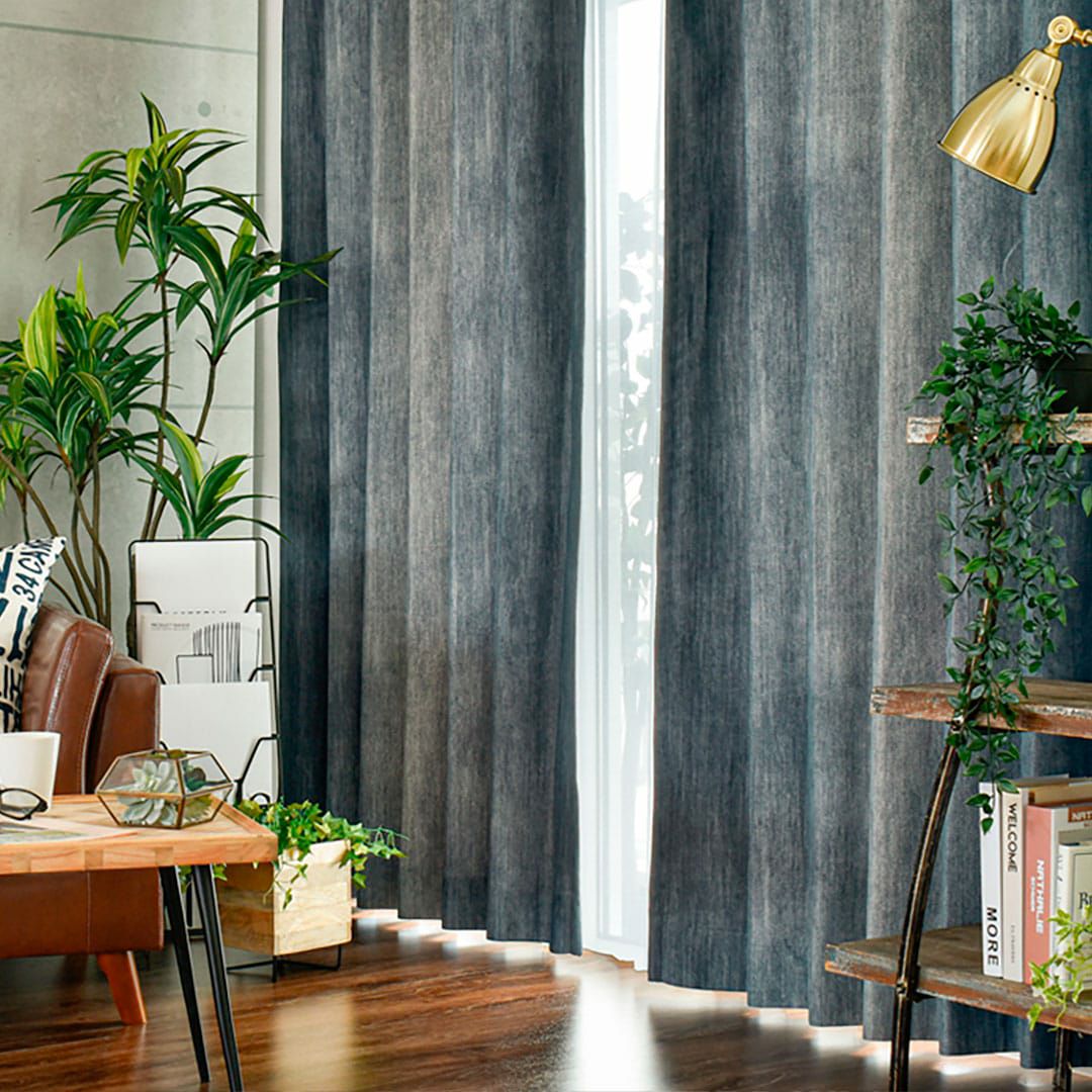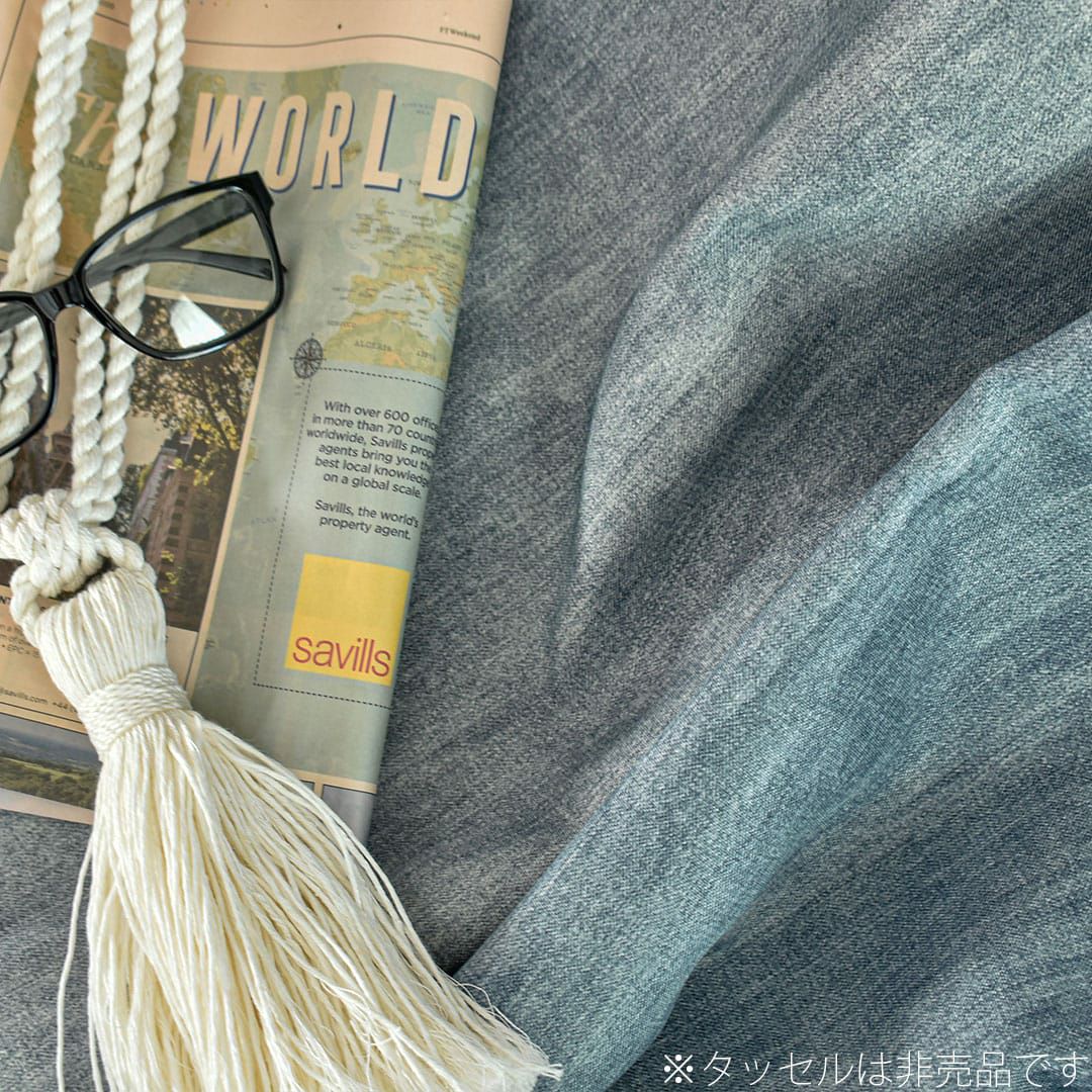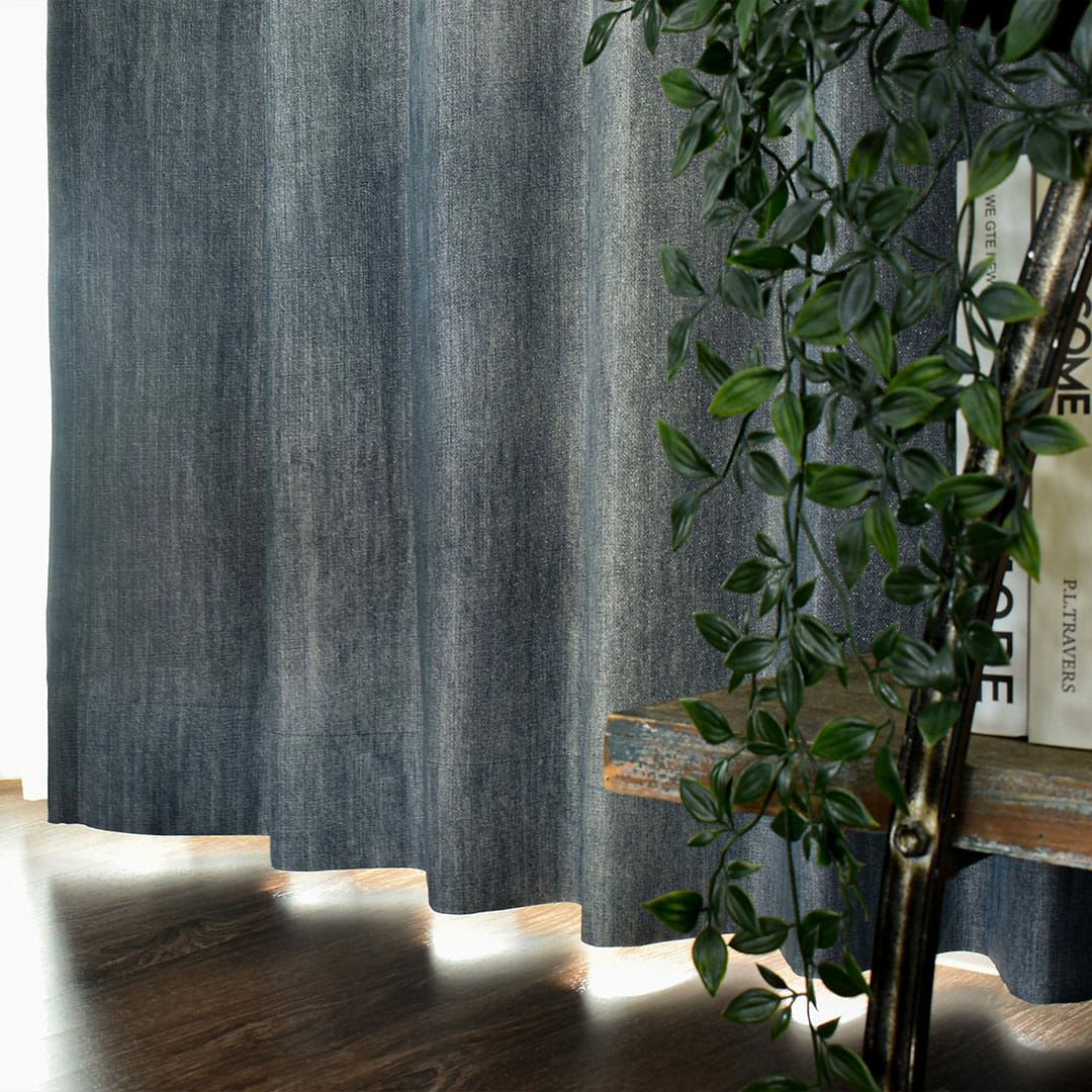 ジーンズでよく見られるかすれを表現しユーズド感がある仕上がりに。 デニムじゃないのにデニムのような重すぎず味わい深いカーテンです。 また、2級遮光なので程よく光を取り込んでくれます。