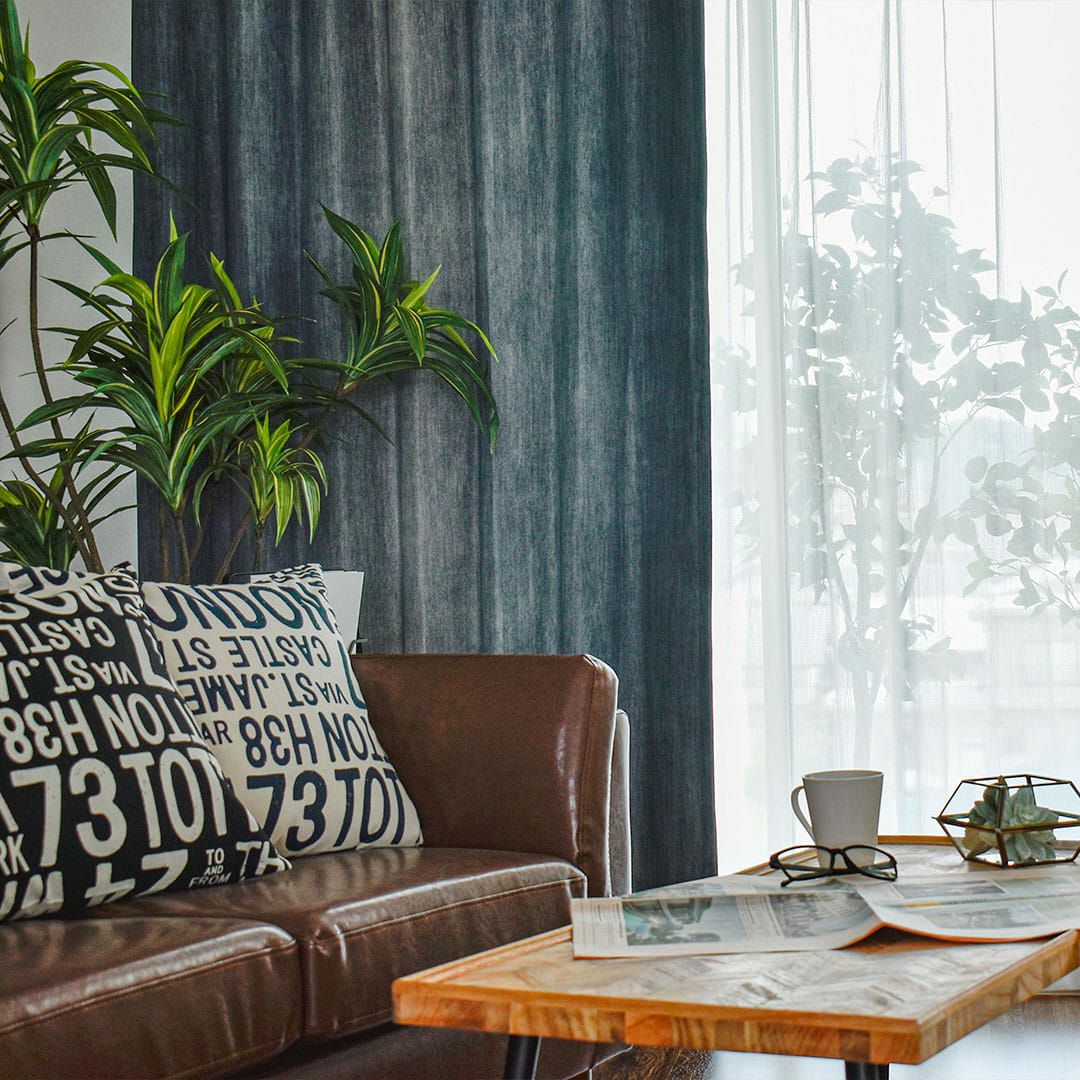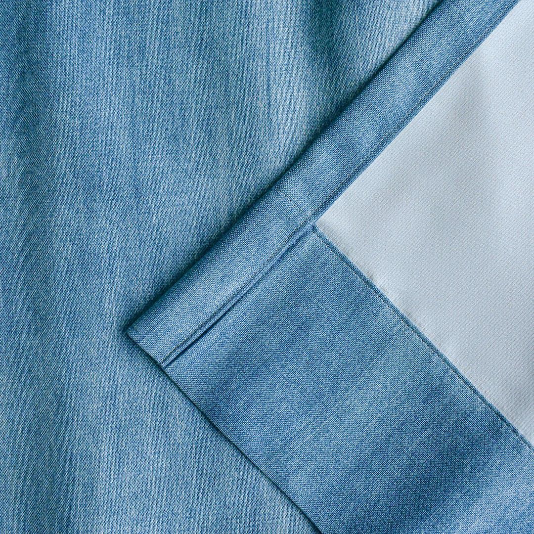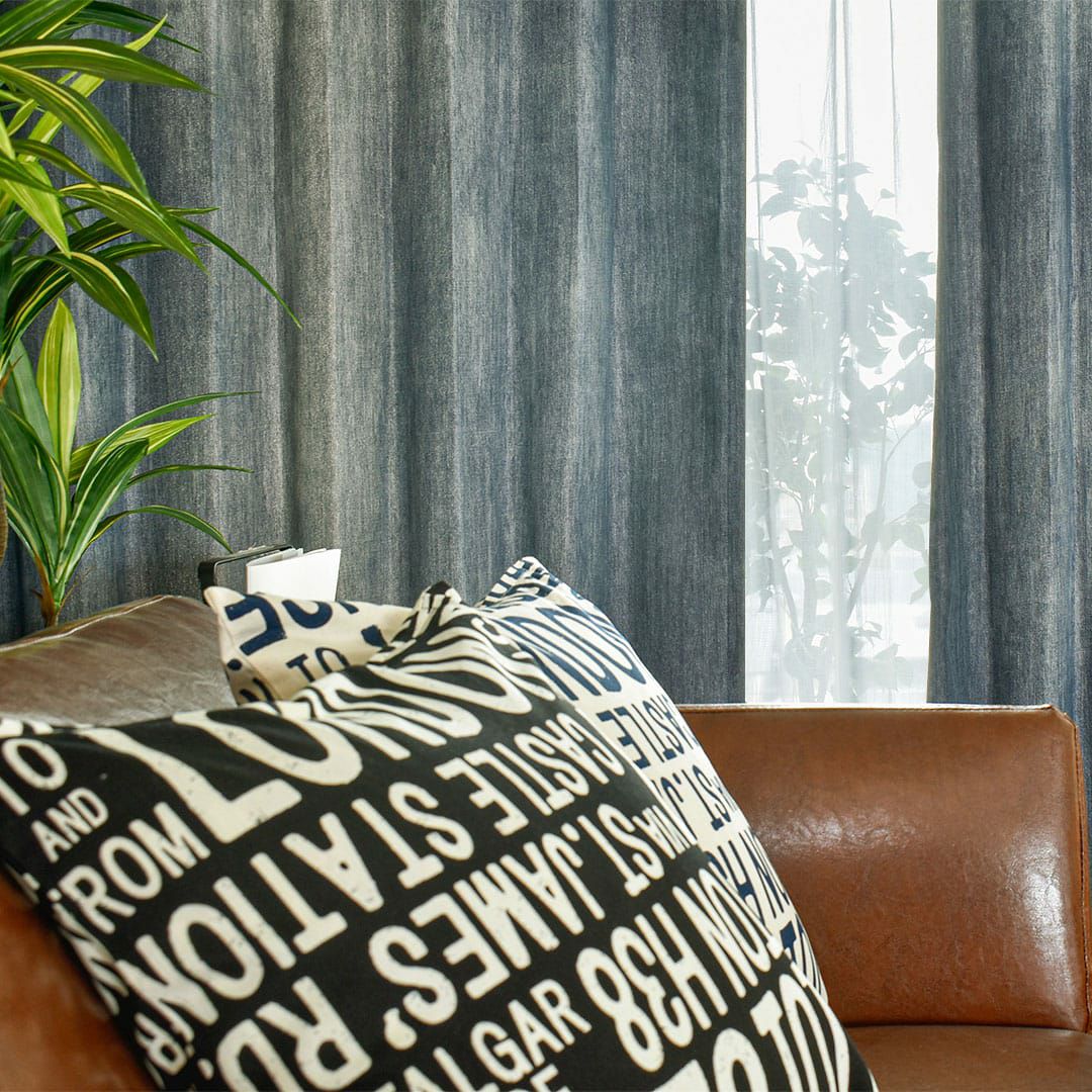ジーンズでよく見られるかすれを表現しユーズド感がある仕上がりに。 デニムじゃないのにデニムのような重すぎず味わい深いカーテンです。 また、2級遮光なので程よく光を取り込んでくれます。
