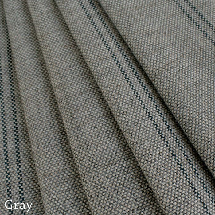 紡績糸で織り上げたツイードルックの生地に2本のラインがアクセント。 英国の伝統的なたたずまいを感じさせる大人のカーテンです。 ポリエステルなのにウールのような生地感に仕上げています。 柔らかなドレープ感があり洗濯機で洗えます。