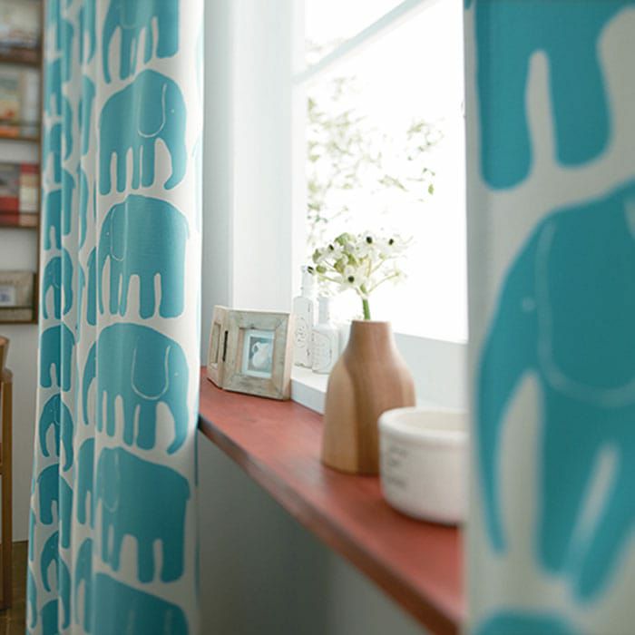 エレファントのカーテンはフィンレイソンでは変わらぬ人気のパターンです。