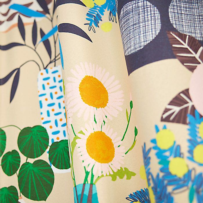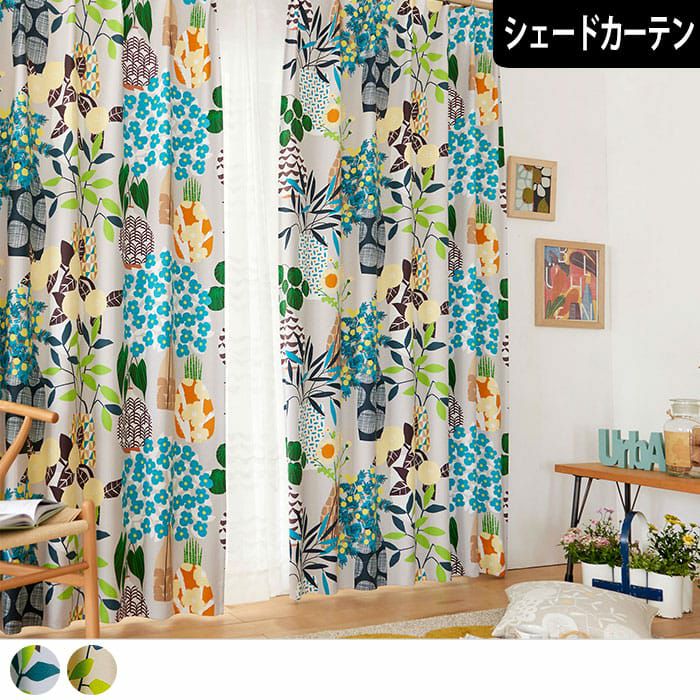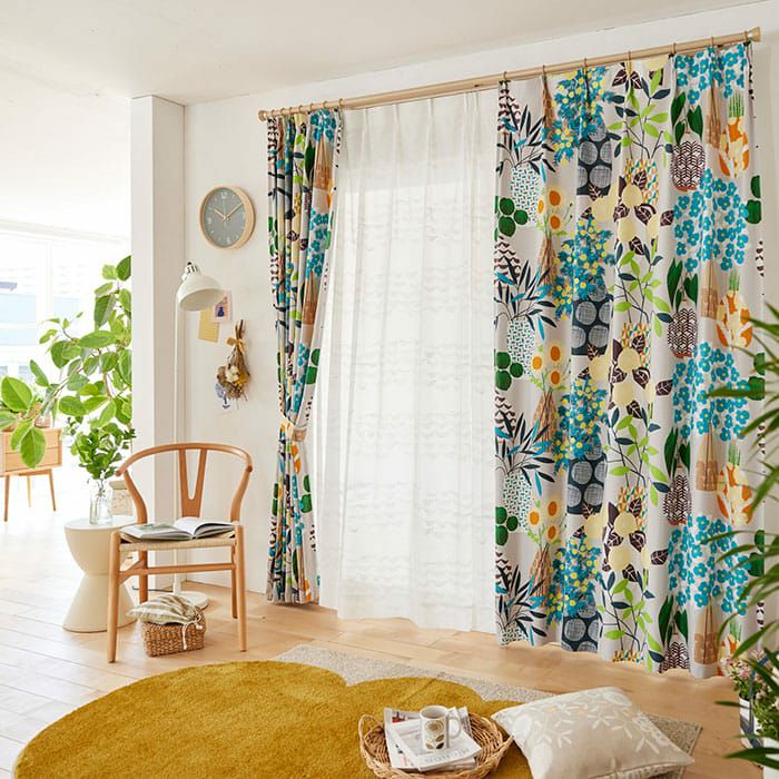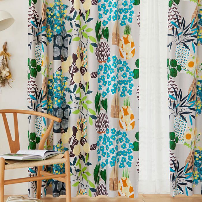 アジサイ、ひまわりなど色々なお花が個性的な花瓶で飾られています。 お部屋が明るく華やかになる北欧風の遮光シェードカーテン。色によって遮光等級が違います。 ポップなデザインとカラーの組み合わせで思わず笑顔に。