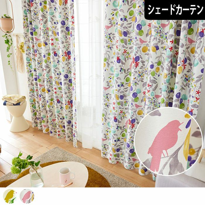 フルーツや木の実の中に小鳥が楽しげに鳴いているデザインを 華やかなカラーで表現している愛らしい北欧遮光シェードカーテン。 ポップなデザインとカラーの組み合わせでお部屋が華やかになります。