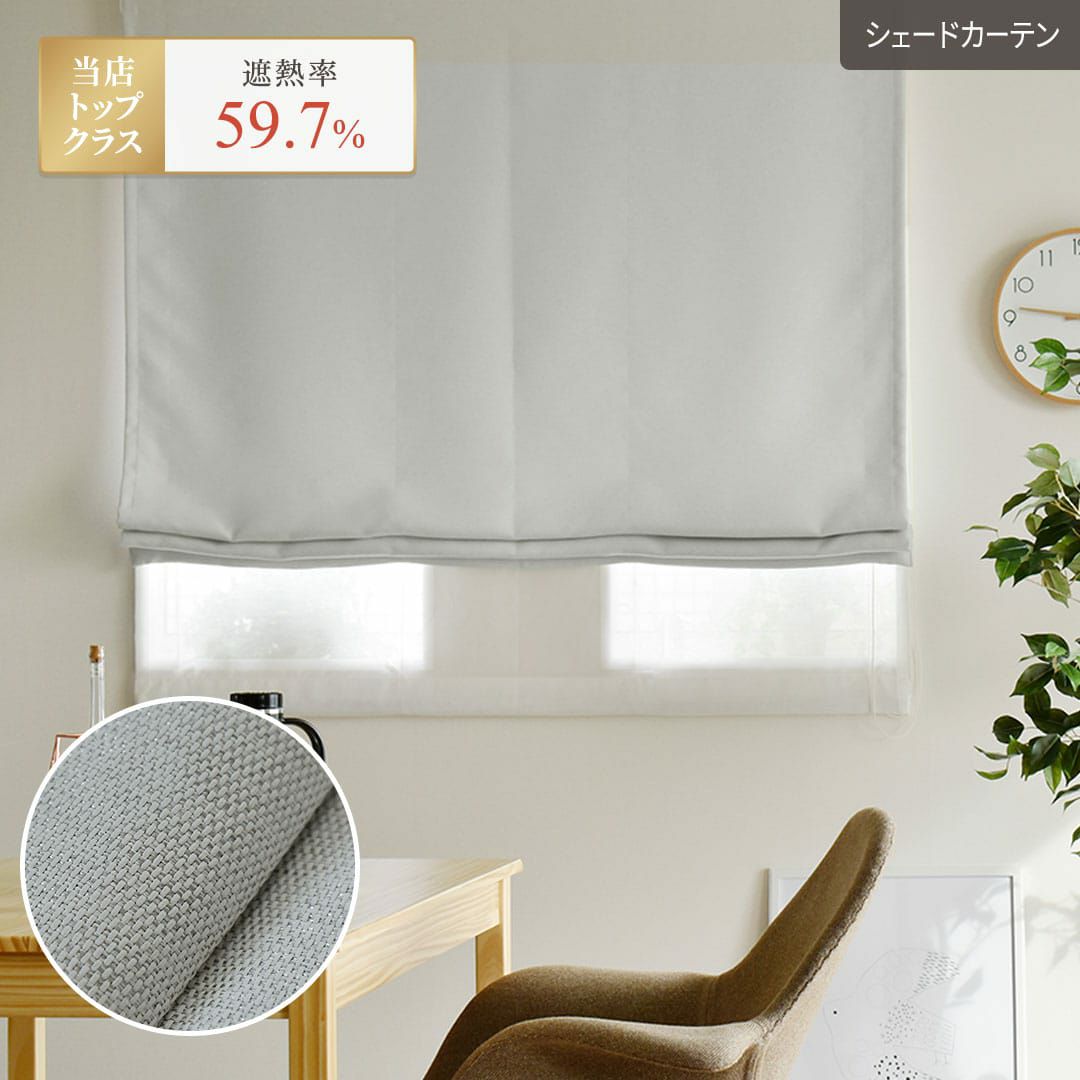 帝人のエコ素材「エコリエ」を織り込んだ遮熱生地で作るシェードカーテン。 少しラメが入ったような光沢のある糸とマットな糸の織りで高級感があります。 カラーは温かみのある明るいライトグレーで、どんな色の家具とも調和がとれやすいです。
