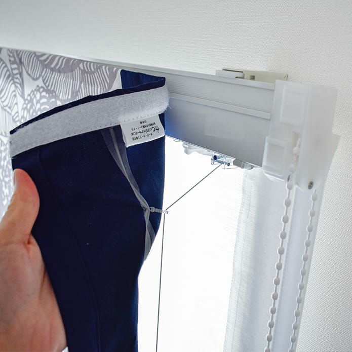 専用の金具でカーテンレールに取付けます。製品幅はレールの幅から左右2cmずつマイナスです。カーテンレールの耐重量に注意してお選びください。