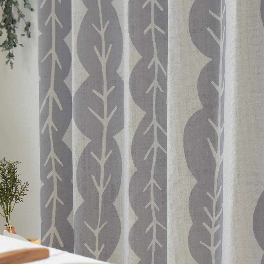 葉っぱ柄で描く縦ストライプがかわいい北欧シェードカーテン