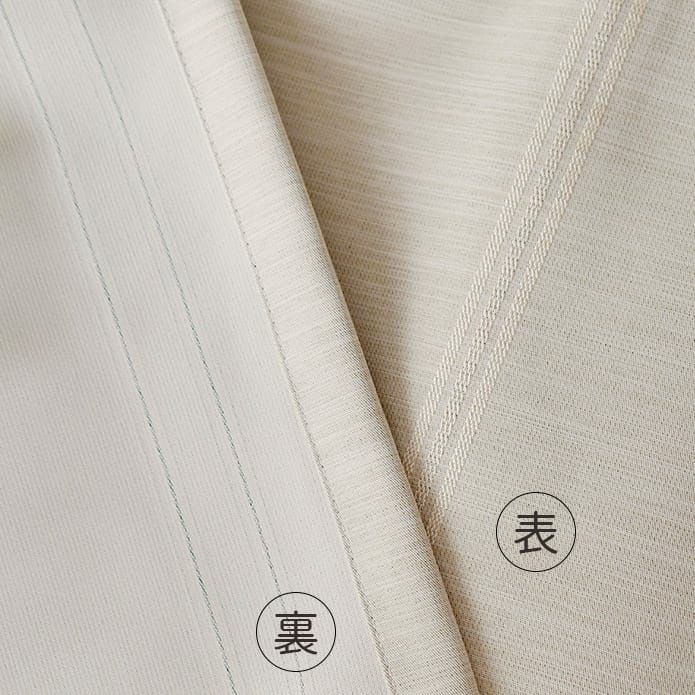 柔らかな印象のナチュラルベージュ 織りで表現されたストライプ柄がやや光沢のある生地に映えて上品な印象です。 ふんわりと光を通す遮光3級なのでリビングにも寝室にもおすすめ。 どんなインテリアにも合うベーシックなデザインです!