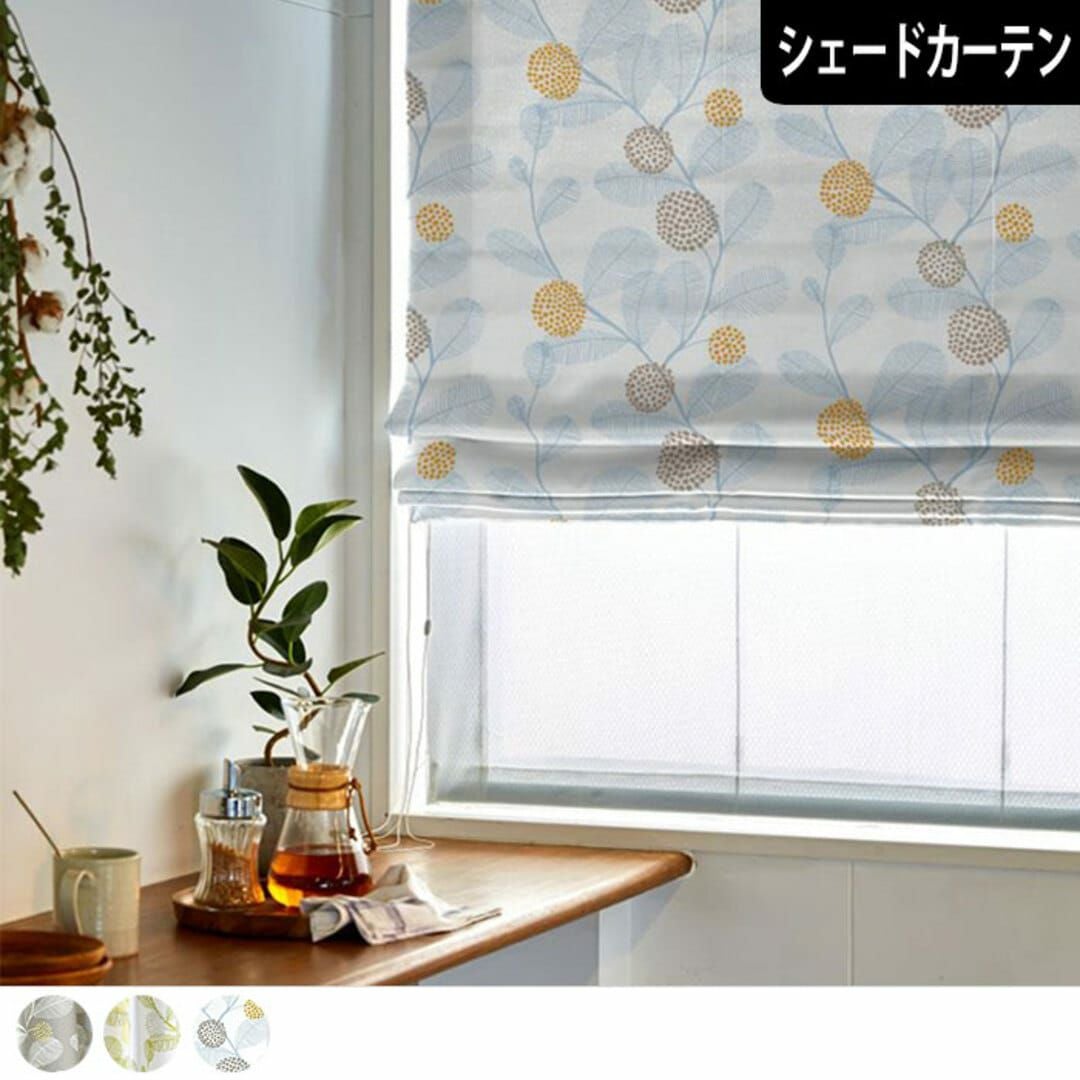 まんまるの葉っぱが優しい 2級遮光の北欧風シェードカーテン