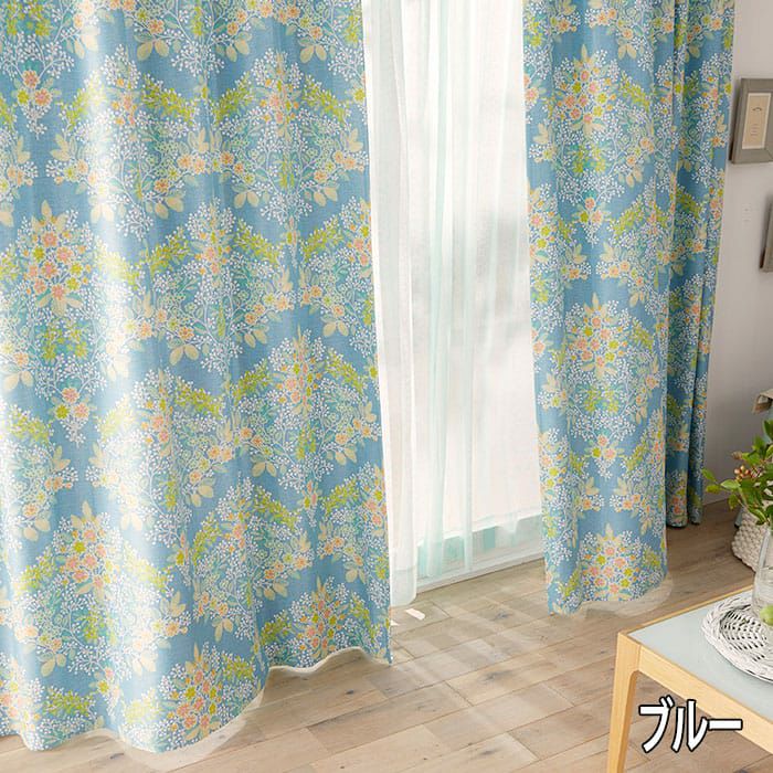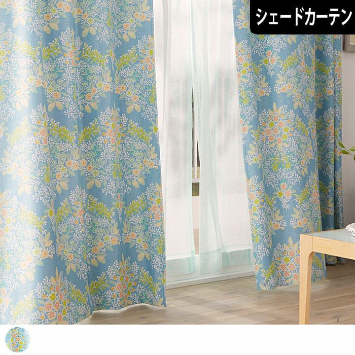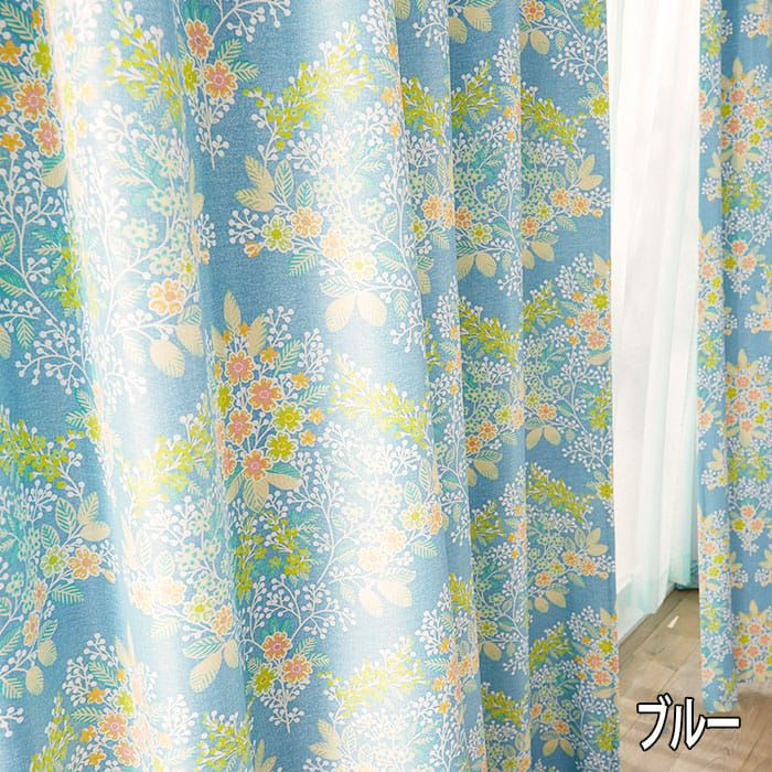 花びらと葉の色の移ろいが繊細なプリントで表現されている北欧遮光シェードカーテン。 ブルーは引き締まった印象でお部屋を演出します。 鮮やかなカラーでお部屋をパッと明るくしてくれます。 遮光2級なので程よく光を遮ってくれますよ。
