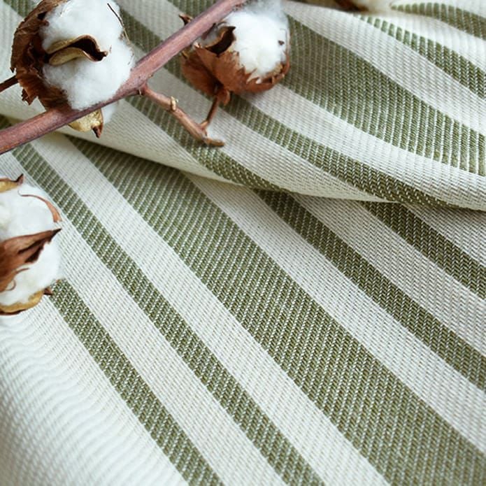 天然素材混の中厚地ベースにフレンチアンティークカラーのストライプ。