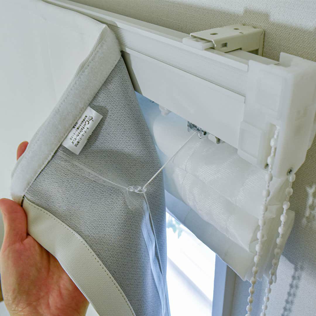 専用の金具でカーテンレールに取付けます。賃貸でも穴をあけずに取付可能です。カーテンレールの耐荷重にご注意ください。