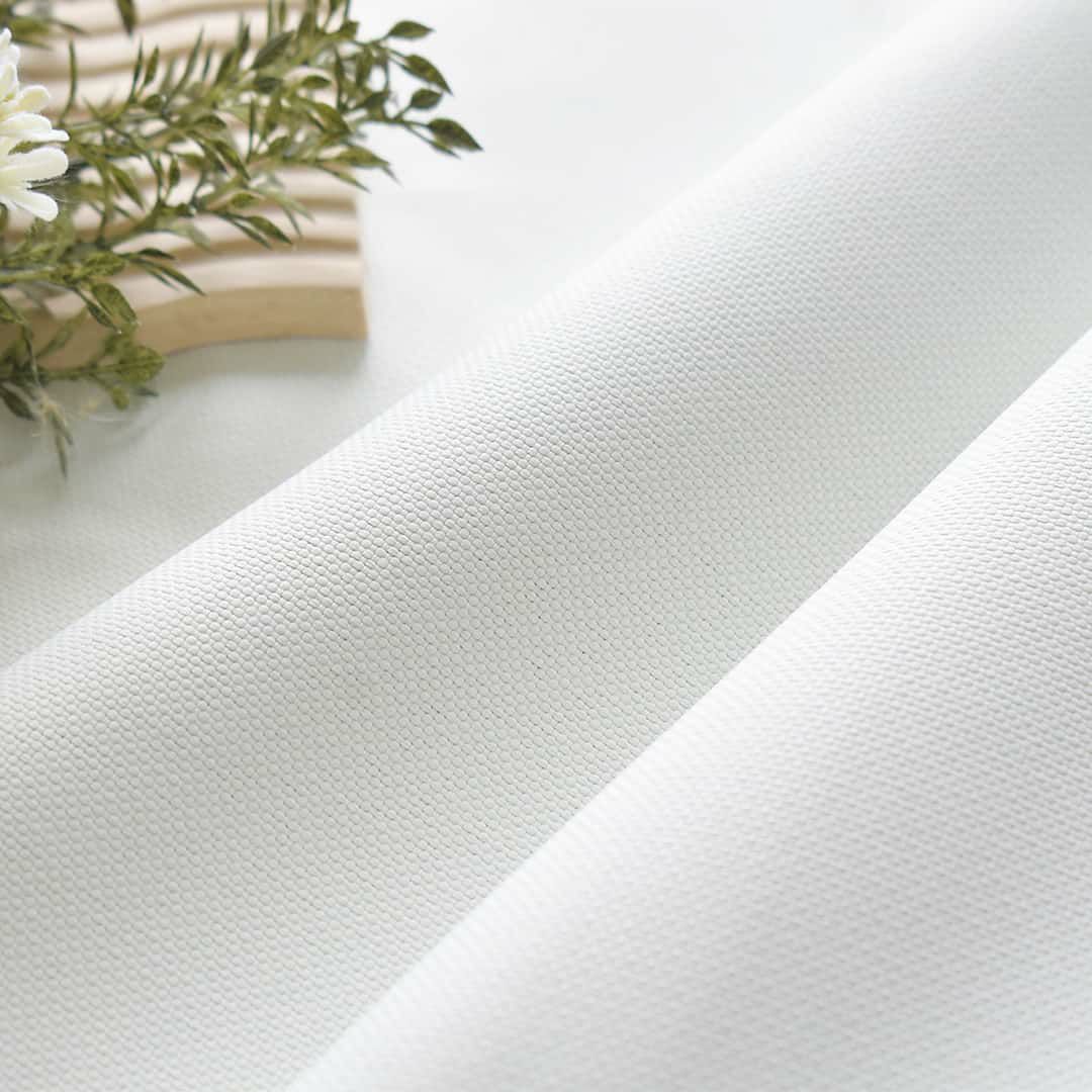 柔らかくもしっかりとした遮光生地です。少し黄みがかったホワイトなのでお部屋に馴染みやすいです。