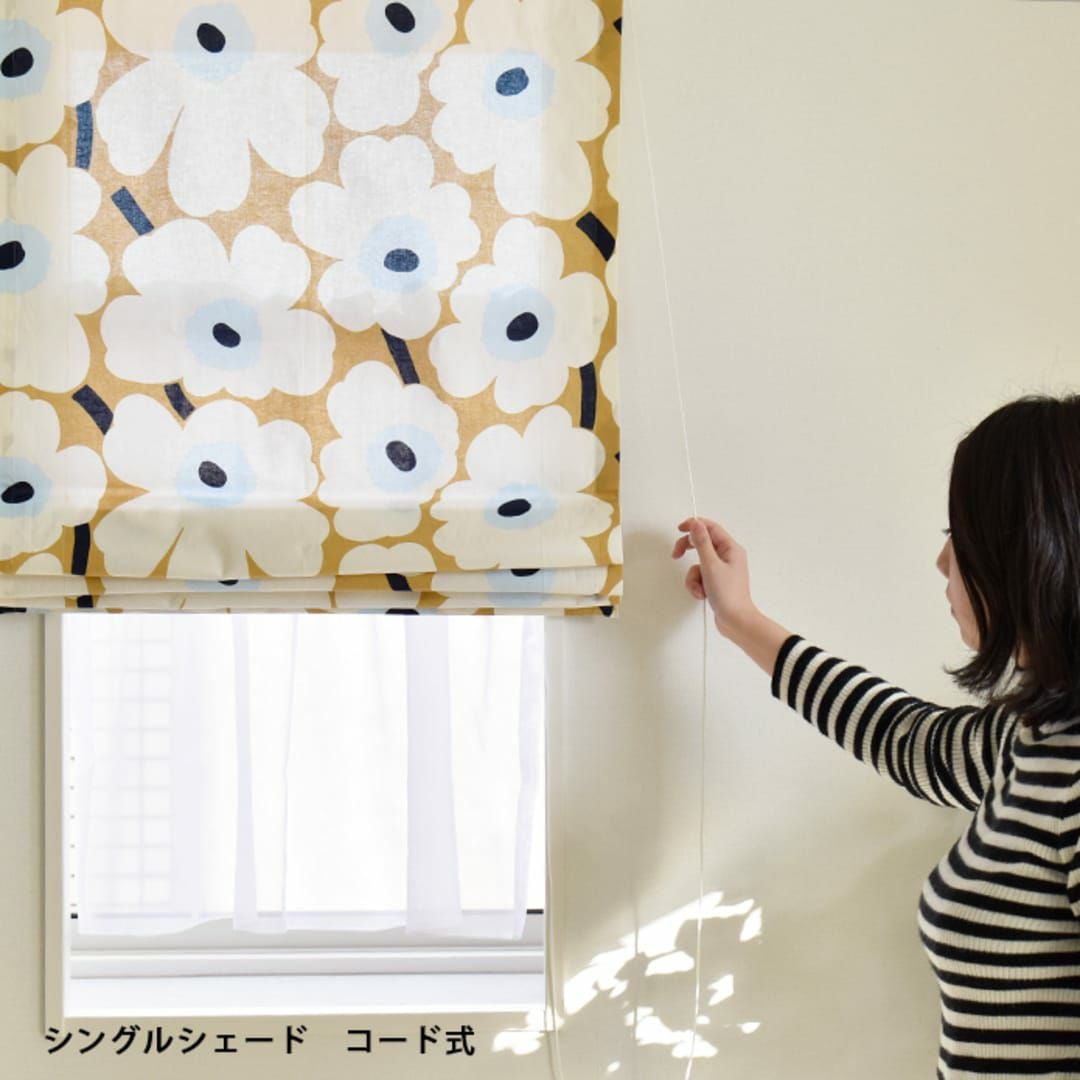コード(ひも)操作で生地を上げ下げし、止めたい位置で止めることができます。小窓や腰窓に向いていて、お手頃な価格です。