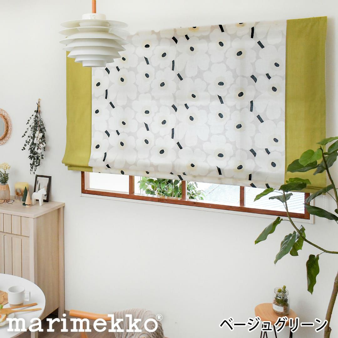 ▲こちらはパレット|ニュアンス&パステル(アンティークグリーン)の生地を使用してつなぎ合わせています。 両端に無地の生地をつなぐことでデザインがより映えてとても素敵ですよ。 ※写真のシェードカーテンのサイズは幅181cm×高さ125cmです