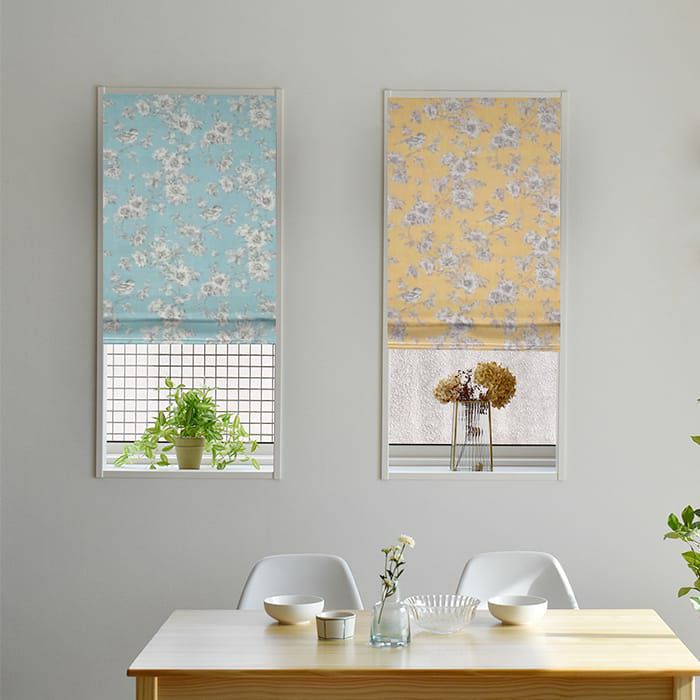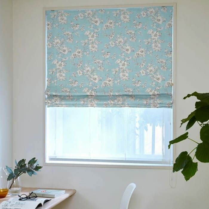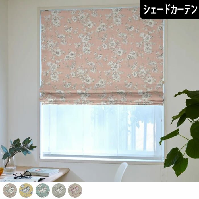 バラと小鳥をモチーフにしたシャビーシックなシェードカーテン