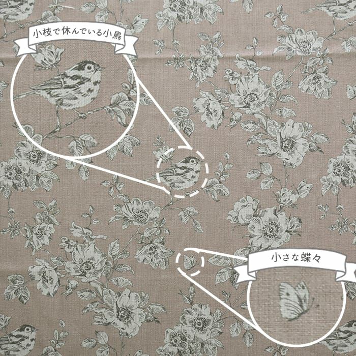 風に揺られて咲くバラの花と、小枝でひと休みしている小鳥をモチーフにしたシャービックカーテンです。やさしく美しい線タッチで描かれた柄は、 18世紀フランスのロココ・デザインの流れを汲む「トワル・ド・ジュイ」調で、こだわりと高級感のあるアイテムです。 非遮光生地なので外の光を優しく取り入れてくれ、リビングにおススメです。