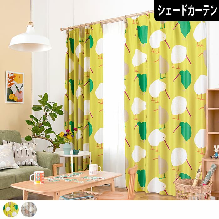 愛らしい丸いフォルムの キーウィ柄の遮光シェード