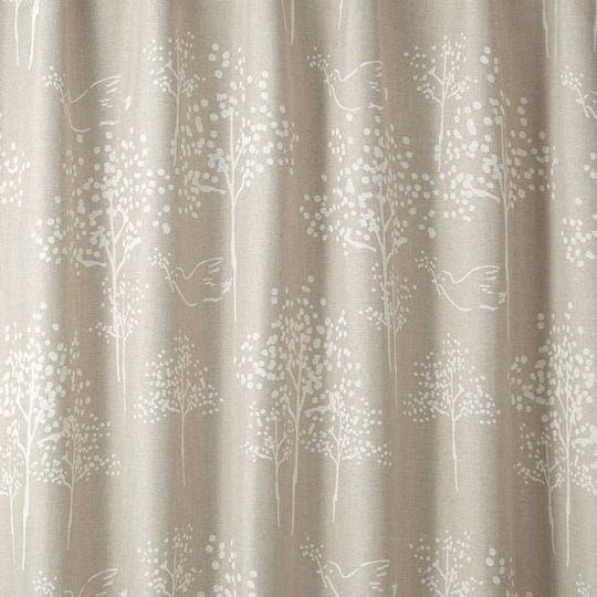 木々の中を楽しそうに散歩する小鳥たちが描かれた優しいデザインの遮光カーテンです。 かわいいタッチで描かれた小鳥たちに癒されます。