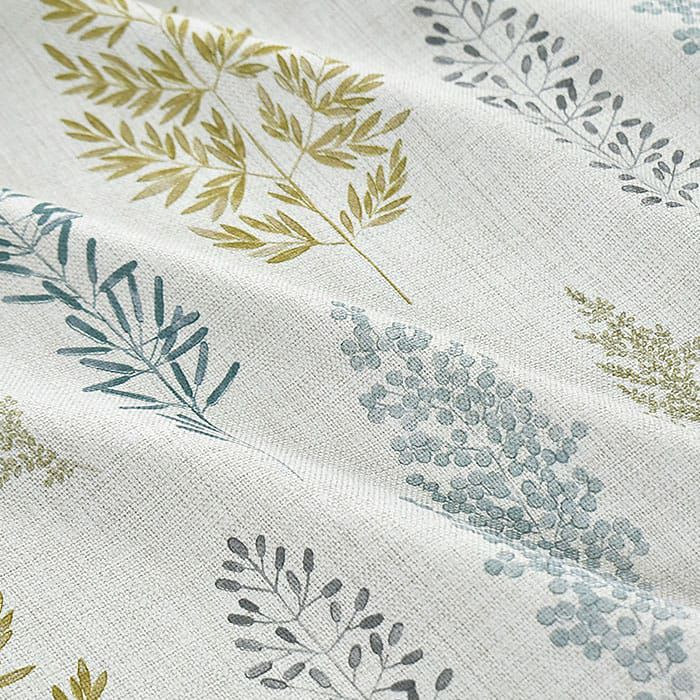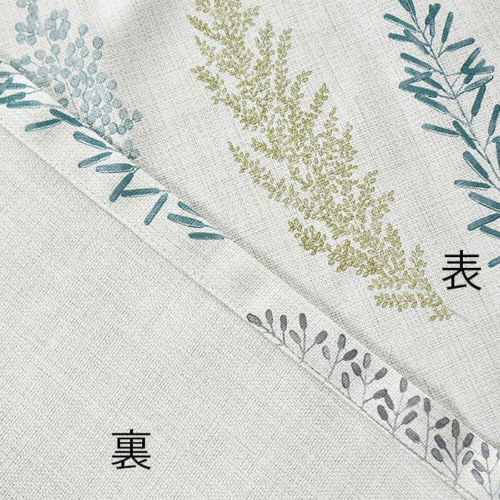 まるでリネンのような素材感のナチュラルな生地に水彩タッチのグリーンの枝葉のデザインがプリントされています。このシャビー感のある生地は糸で織りで表現されている為、裏面も表と同じ表情をしています。