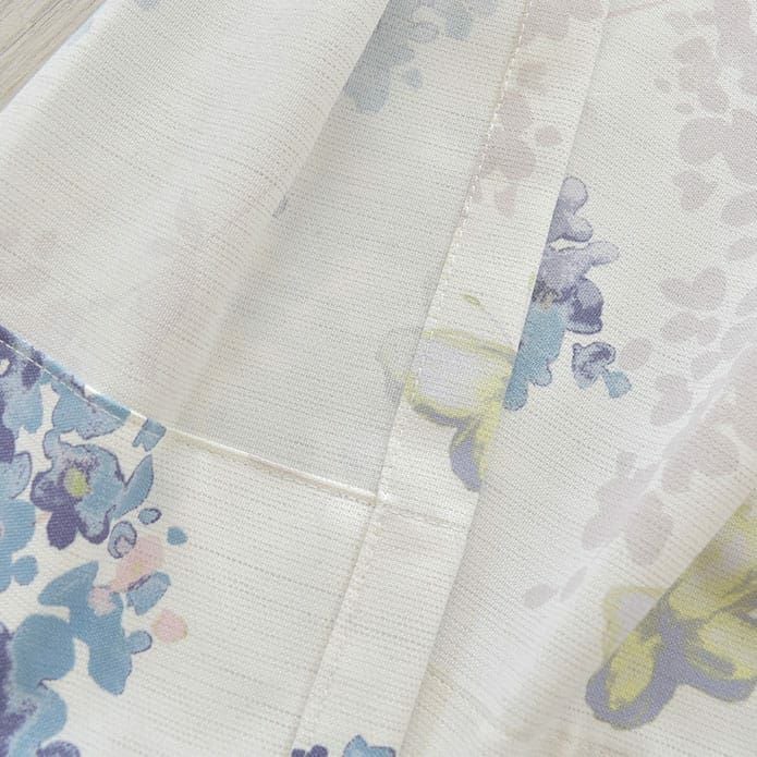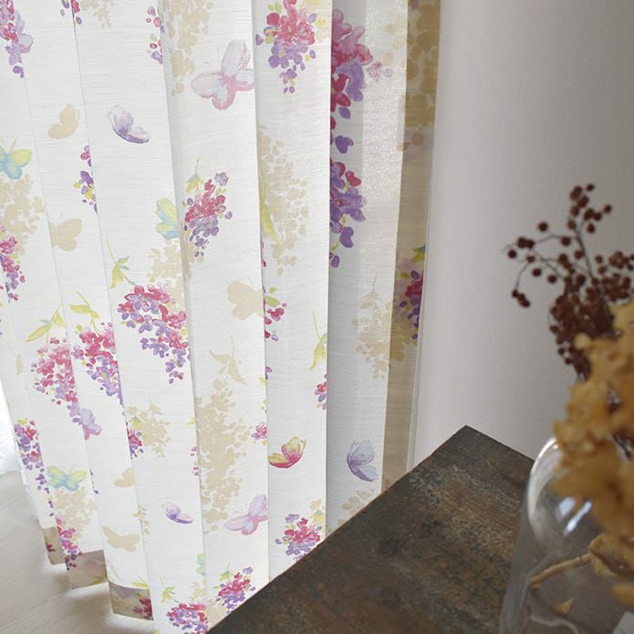 水彩タッチのランの花と蝶が描かれた リネンライクシェードカーテン
