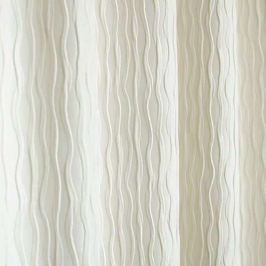 非遮光生地なので外の光を優しく取り入れ、白から優しい光の色を楽しむことができます。 また、流れるようなラインが浮かび上がり、神秘的な印象になります。 凹凸のある波打ったデザインが美しいカーテンです。 よく見るとキラリと光る糸が織り込んであるので上品さがあります。