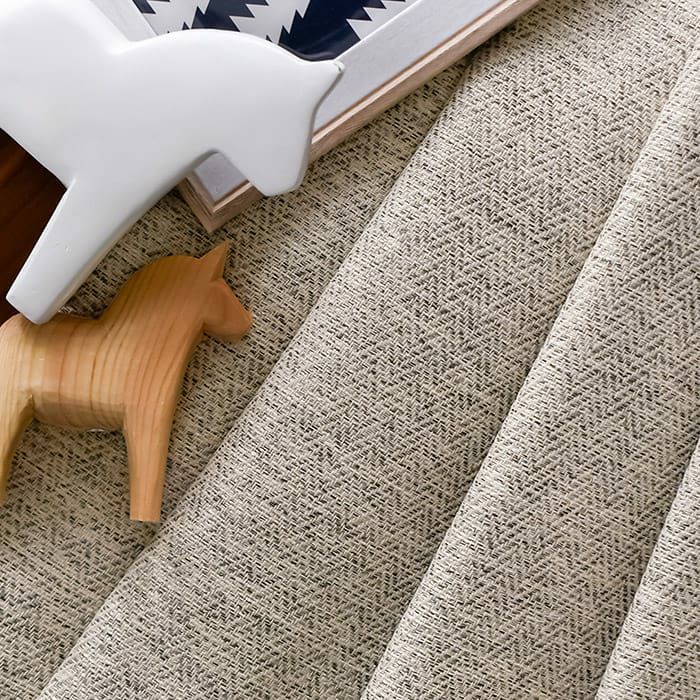 ふっくらしたソフトな質感で温かみのある生地です。少し光沢のある糸も使用しているので、カジュアルになりすぎず上品な印象になります。 立体的に見えるざっくりとしたヘリンボーン柄でナチュラルな風合いも楽しめます。 自宅で洗濯ができるのでお子様やペットがいるご家庭でも安心してお使いいただけます。