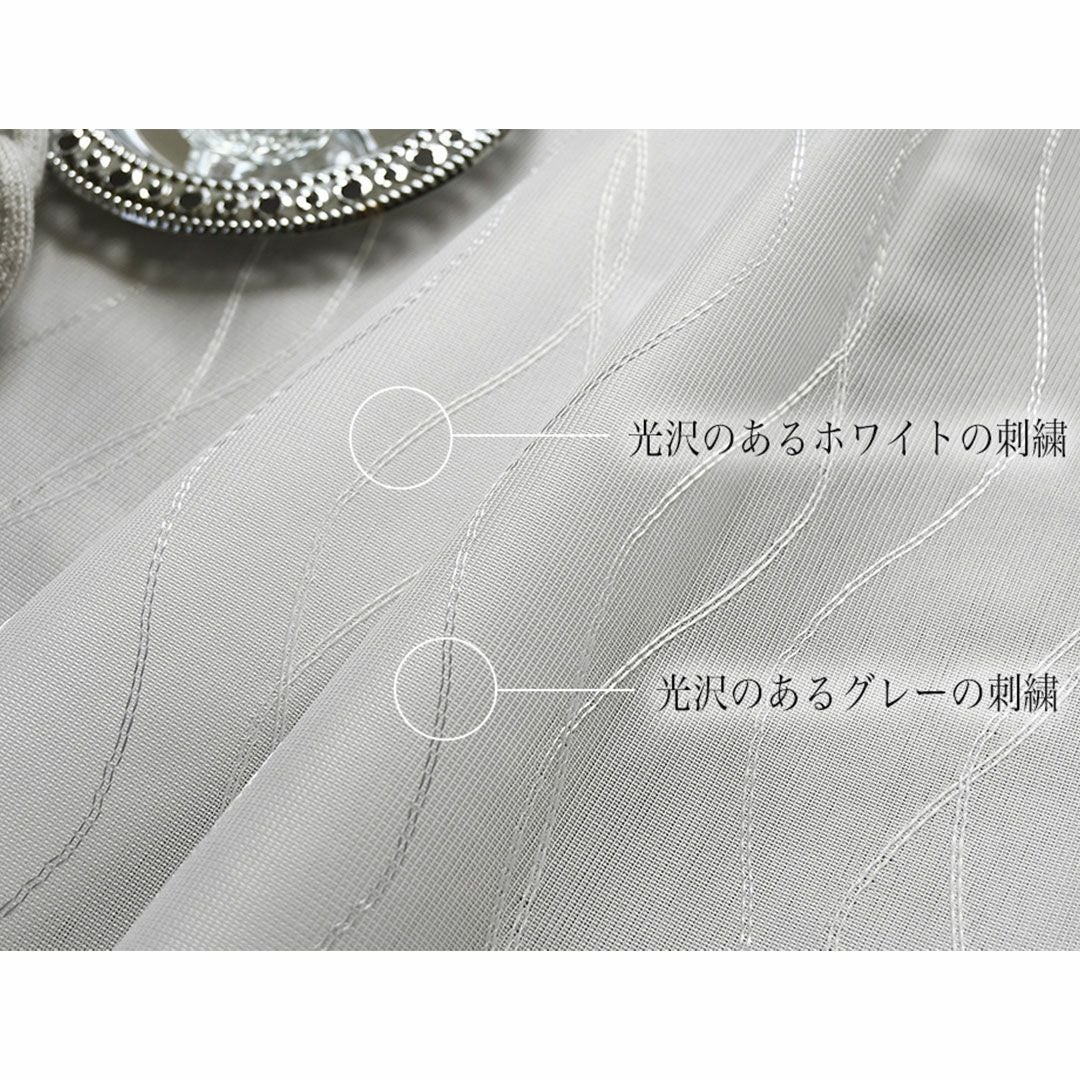 流れる波ラインの刺繍が上品なアクセントになります。光沢のあるホワイトとグレーの刺繍糸を使用しており飽きのこないデザインです。
