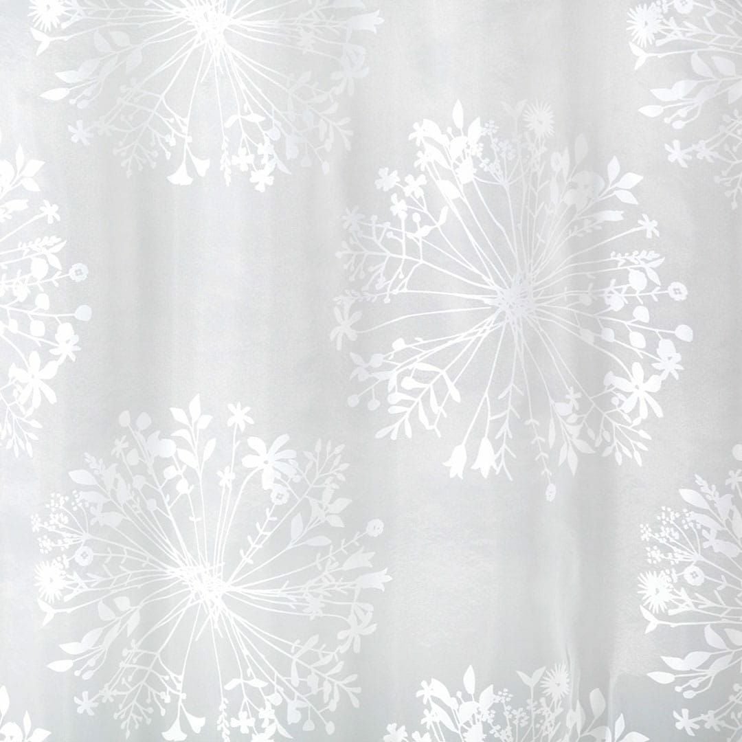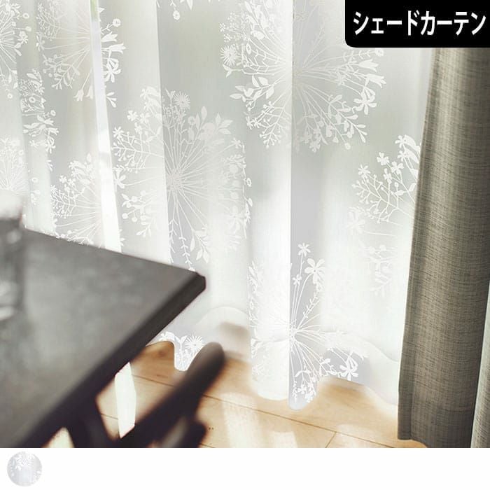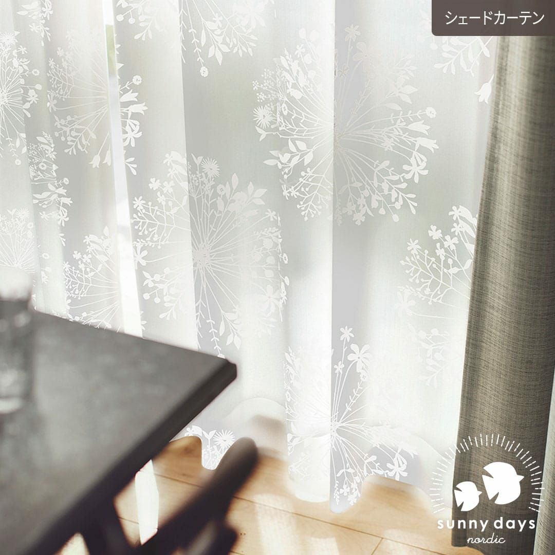 クッカとはフィンランド語で「花束」の意味。 きれいなシルエットの花束を大胆&繊細にレイアウトし、オパールプリントで表現した北欧風ボイルレース生地。 透け感たっぷりのふわふわした肌ざわりのレースカーテンです。