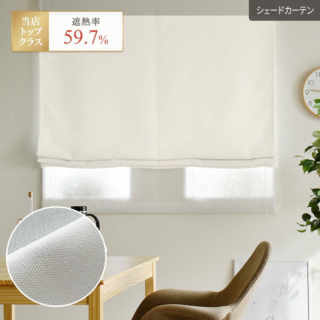 帝人のエコ素材「エコリエ」を織り込んだ遮熱生地で作るシェードカーテン。 少しラメが入ったような光沢のある糸とマットな糸の織りで高級感があります。 白はお部屋をパッと明るくし広く見せてくれます。壁紙と馴染みやすい人気のホワイトです。
