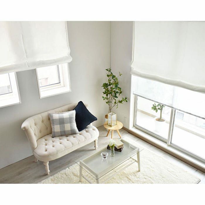 ホワイトインテリアにピッタリの真っ白のシェードカーテンです。 お部屋がパッと明るくなり洗練された空間になります。 白いシェードカーテンはお部屋をよりスッキリと広く見せてくれる効果があります。 取り外し可能なので自宅で洗濯もできます。