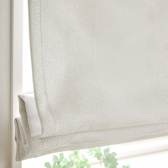無地に光沢のある格子柄の帯がモダンな遮光防炎白い生地 【シェードカーテン】サビオ(ホワイト)