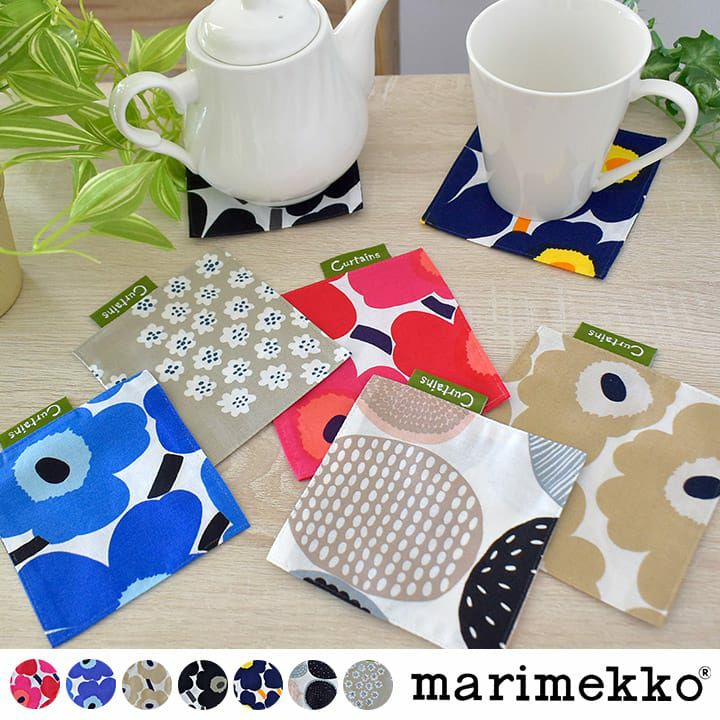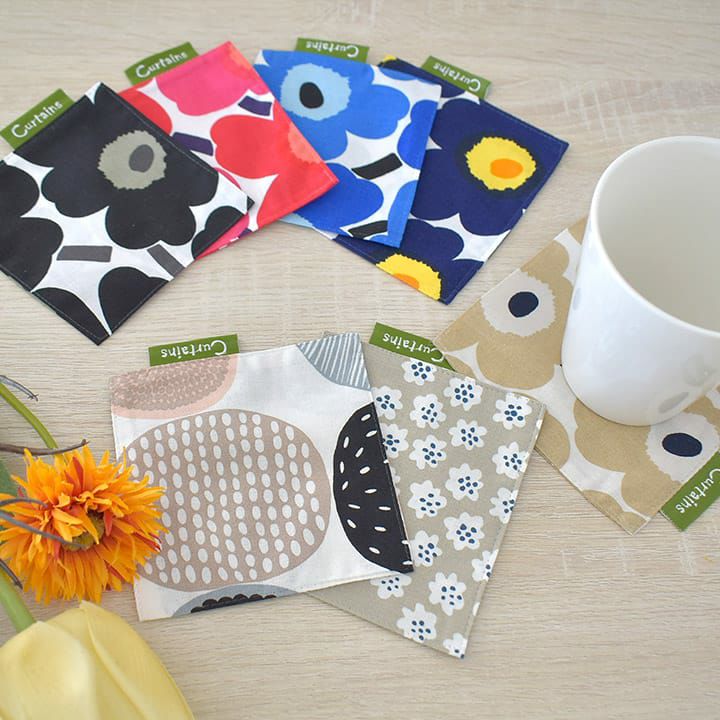 カラフルな色使いやお洒落な柄が人気の北欧ブランド”marimekko”の生地で作ったコースターです。 マリメッコならではの大人可愛いデザインでティータイムに彩りを添えてくれます。