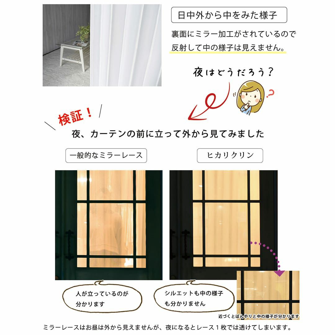 他の画像を見る ミラー 遮像(昼夜透けにくい) 消臭 抗菌 洗濯機 UVカット率85.0%以上 保温率20.0%以上 遮熱率30.0%以上 消臭抗菌効果のある昼も夜も透けにくいレースカーテン 【遮像レースカーテン】ヒカリクリン ¥ 2,550 税込 詳細を見る お気に入りに追加する