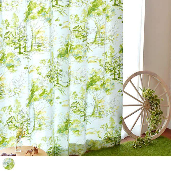 水彩タッチの優しい色使いに癒されるグリーンのカーテン「フォレスタ」