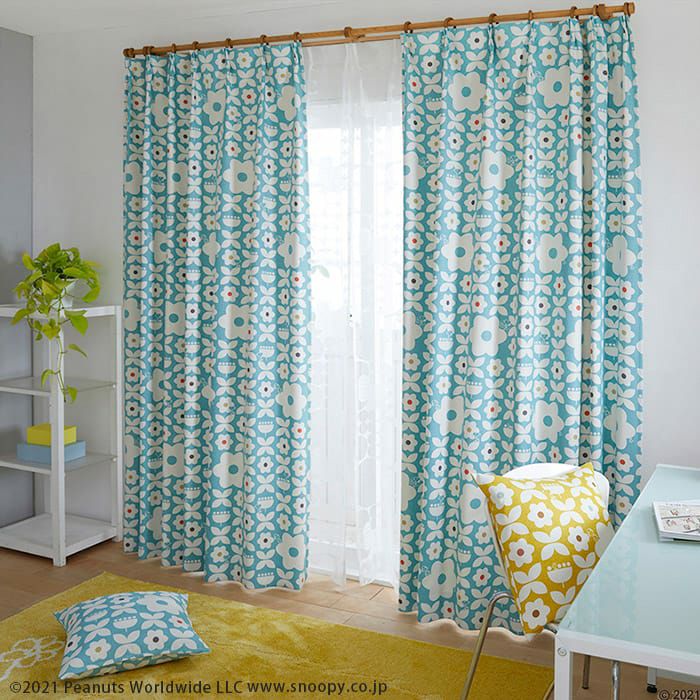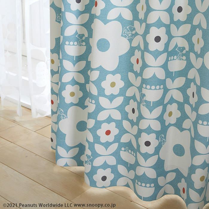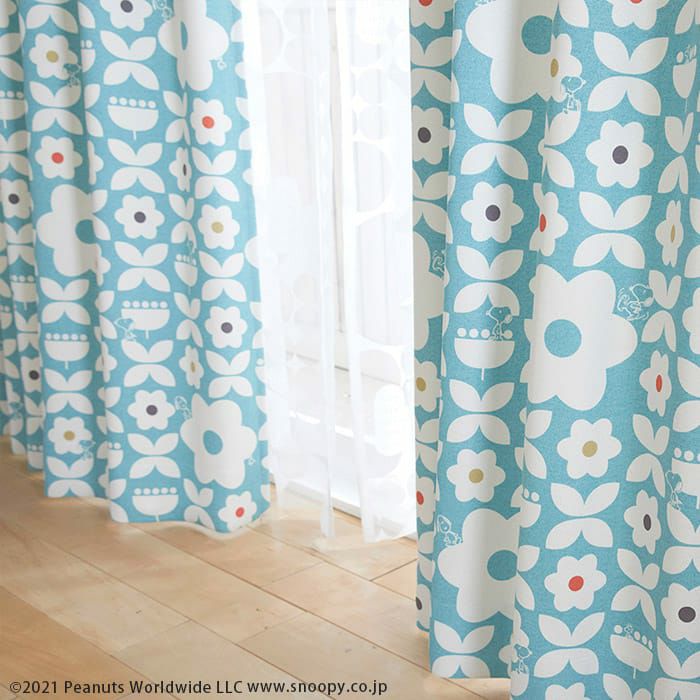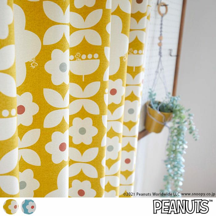 花の迷路とスヌーピー柄カーテン 【遮光カーテン】フラワーメイズ|ピーナッツ
