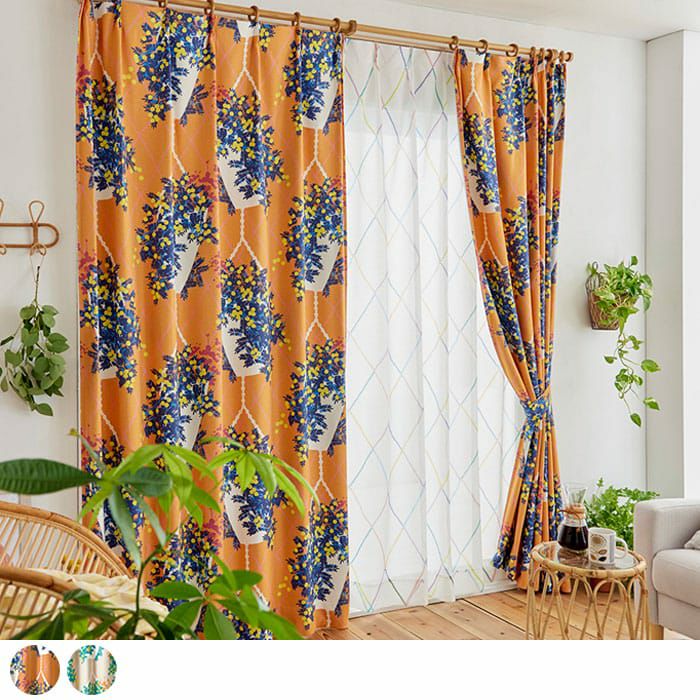 大きなプランターが華やかな北欧遮光カーテン