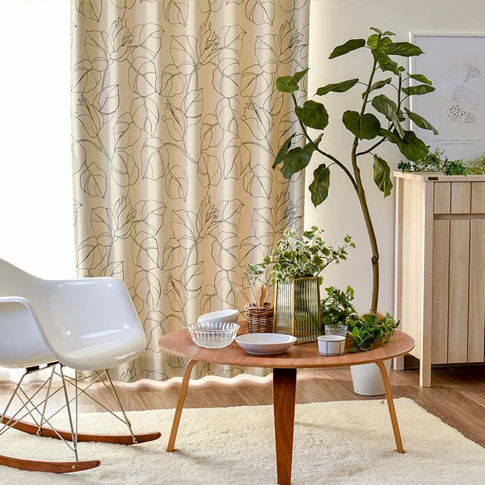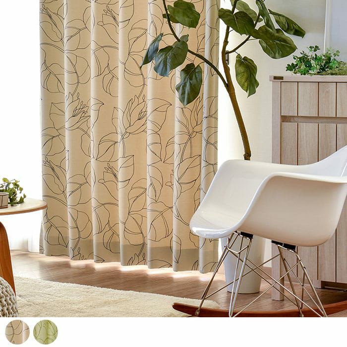 大胆に描かれたボタニカルデザインの遮光2級カーテン。 防炎機能もついて高層マンションでも安心です。 大人な北欧モダンインテリアや ナチュラルなリビング、ダイニングなどにもぴったり。