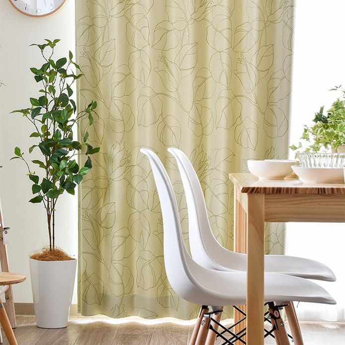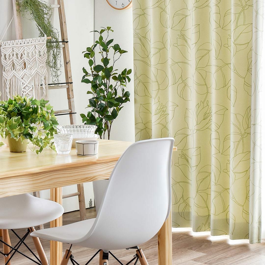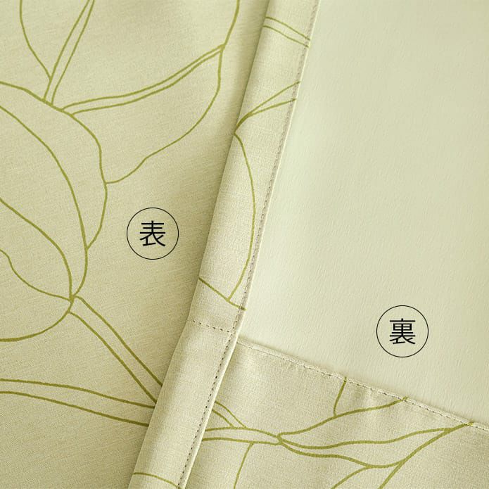お部屋がすっきりとまとまる、グリーンとアイボリーの2色。 2級遮光カーテン地ですので眩しい光を程よくガード。 外からの視線も遮り、プライバシーを守ります。