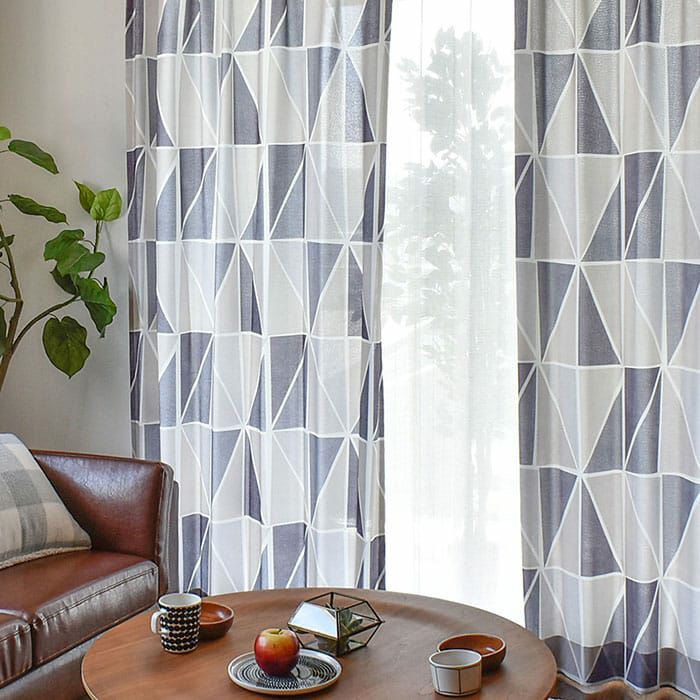 ※写真は全て1.5倍ヒダ(形状記憶あり)です。 パラペリとはフィンランド語でパズルの意味。 モノトーンな三角形が集まった幾何学柄のカーテンです。 色は落ち着いたグレー系なのでデザインカーテンに挑戦しやすい色です。 ヴィンテージやモダンなお部屋におすすめです。
