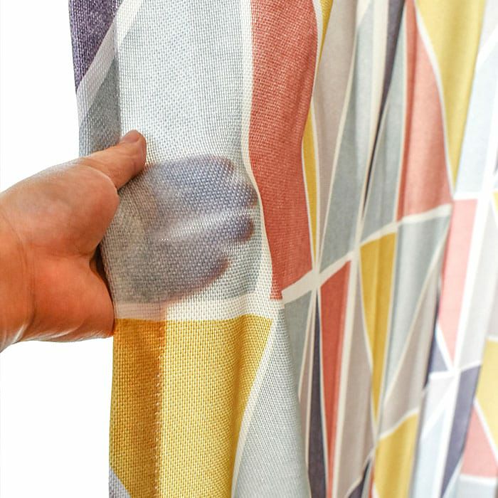 モダンな幾何学柄に北欧な色合い、 ヴィンテージなかすれが遊び心のあるカーテンです。