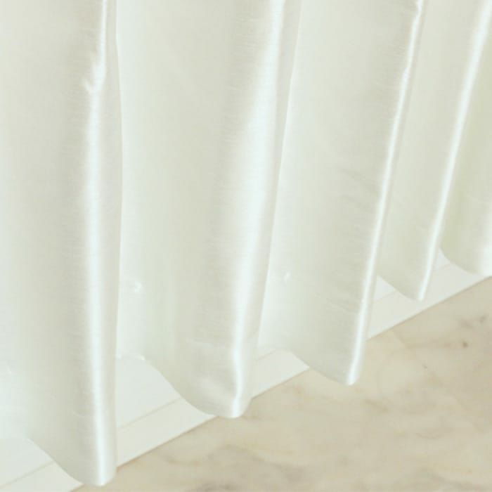 横糸が太い特徴の無地シャンタン生地。 デザインレースとの組み合わせにピッタリのシンプルカーテンです。 非遮光のため光を柔らかく通し、 明るい上品なお部屋を演出します。