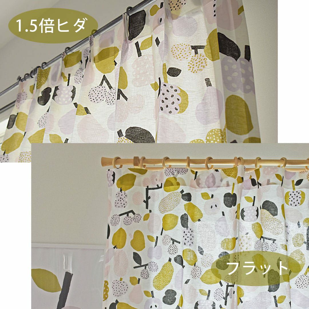 カーテンの仕上がり幅に対して約1.1~1.3倍の生地を使用(当店では1.2倍を推奨)し、ヒダ山がないカーテンです。柄がしっかりと見えるので大柄のデザイン生地やナチュラルな生地におすすめです。