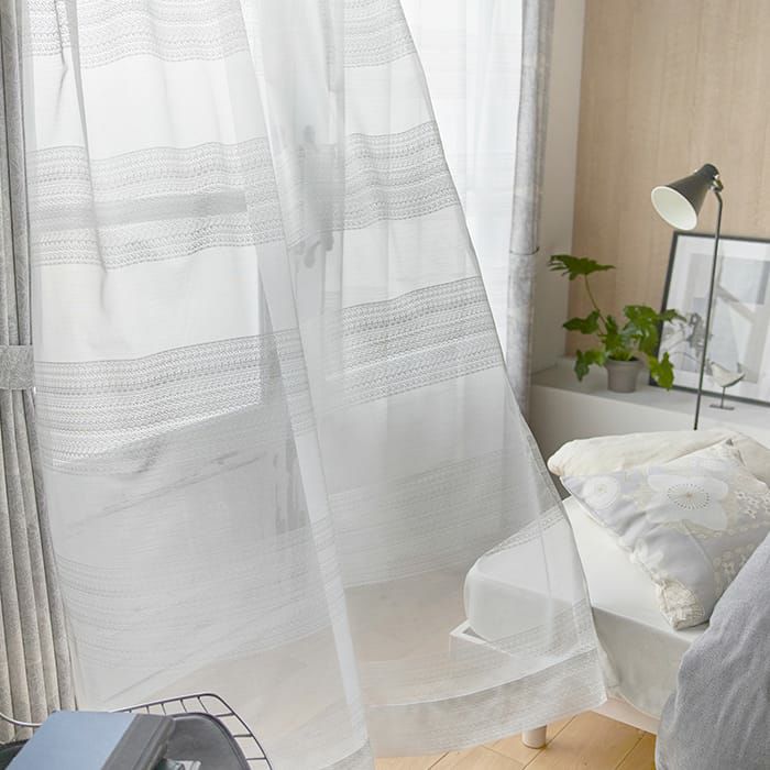大胆なボーダー柄が映える、外から見えにくいミラーレースカーテン 【北欧レースカーテン】ローヌ