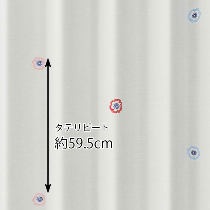 パンジーの花の刺繍が可憐で優しげな北欧風ボイルレースカーテン 【北欧レースカーテン】リコボイル